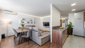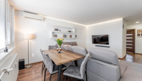 Byt je po kompletnej rekonštrukcii o výmere 91m2+7m2 loggia a nachádza sa na 8/8 posch. s výťahom v rekonštruovanom panelovom bytovom dome. má 3 samostatné izby, prepojenu kuchyňu s otvorenou obývacou časťou s výstupom na zasklenú loggiu. klimatizáciu , kuchynsku linku na mieru so zabudovanými elektrospotrebičmi,v kúpeľni sprchovací kút +vaňa, umývadlo, samostatné WC, vstavané skrine v každej izbe, vstavaná skriňa na chodbe, laminátové podlahy, rámové interierové dvere,keramická dlažba. atď.